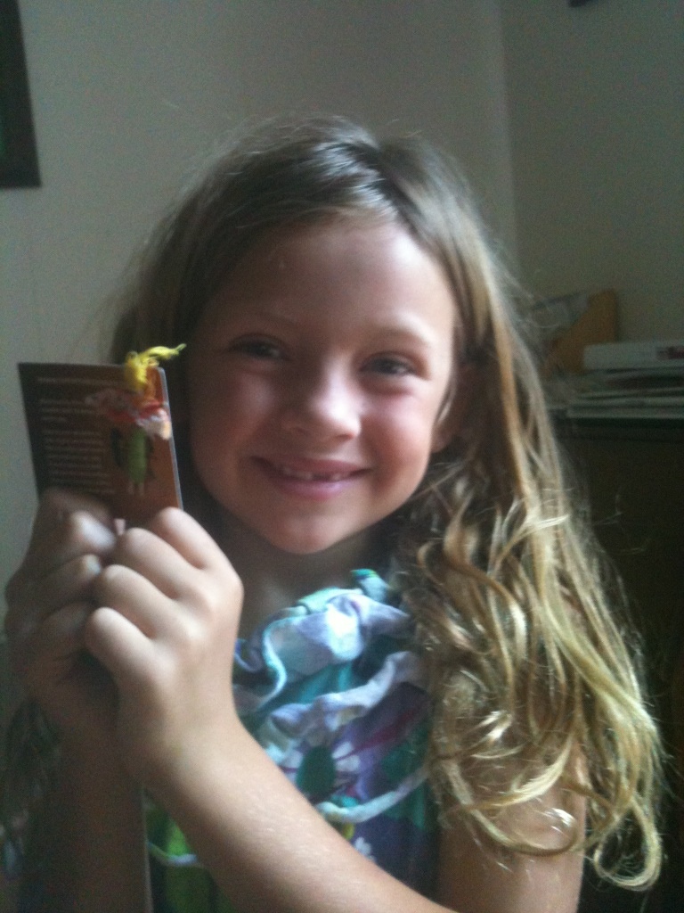 And we have a winner! Hazel (who traveled all the way from Colorado with her family to be at this year’s Newport Folk Festival) sent in this very adorable photo of herself holding the winning trouble doll that she picked up while at the festival.