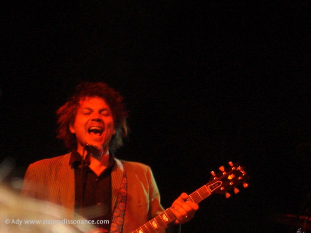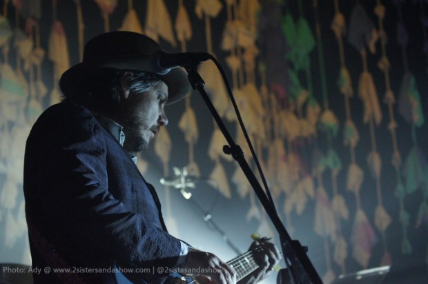 If you’ve found this post, chances are huge that you’re already a Wilco fan yourself. Which therefore also probably means you don’t need convinced of the brilliance of Wilco, both in studio and live. In a nutshell, the band played so tightly and in synch with one another that I kept marveling how, over the years six people seemed to have morphed into a singular musical organism. The stage was filled with its dripping, draping lighted cloth hanging from above and their maze of instruments—guitars, pedals, cords, keyboards everywhere. Glenn Kotche’s percussion set was so elaborate and visually bombastic that it alone looked like a scene straight from a Terry Gilliam movie set.