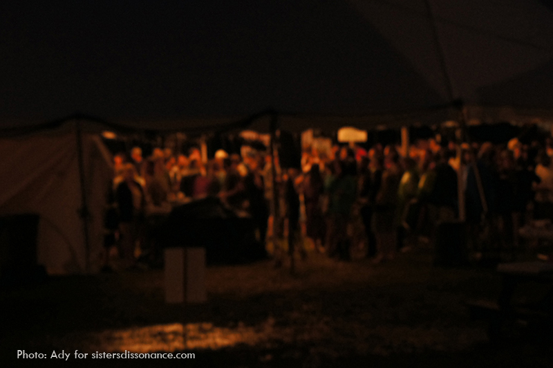 In short, the BBQ was almost entirely cancelled due to the storm, but for those of us who decided to wait out another round of storms and remain, we watched as one by one musicians rose to the challenge to resurrect the evening with only their voices and acoustic instruments (and some hand claps too). A few highlights from the Backstage BBQ included off the cuff performances from Eric George, Joe Fletcher, Sarah Lee Guthrie and Johnny Irion , Jim James, Ben Sollee, Spirit Family Reunion with many others. When it was all over we made our way through the tunnel exit which, just hours prior was reportedly under, if memory serves me correctly, at least 18 inches of water. The BBQ itself, in my opinion worth the price of the entire weekend itself just to be present for an event that is sure to go down in NFF legend and history, will be covered in its own separate post in the next few days, including a full photo set. Until then, a sneak peak into the night: