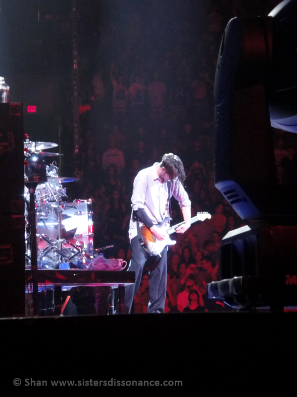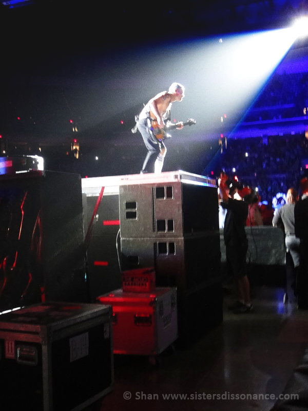 For this reason, I decided that my camera would remained holstered for the majority of this show. I’d seen a sea of cameras (as well as a 6-foot high dancing chili pepper!) in the audience so I figured the show was being well documented already. I did however find it irresistible to capture a few great moments from Flea, Josh Klinghoffer, and Chad Smith. These photos say it all. (Anthony Kiedis is missing here of course, but the real Sis-Diss photo gal Ady captured a full set from the Philly show in May, so check her post for many more photos).